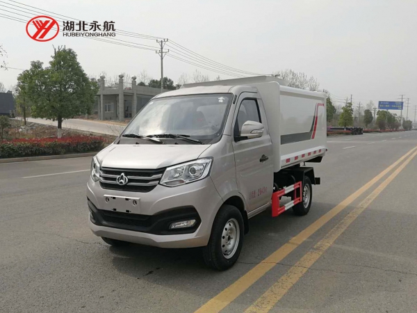 箱体容积3立方,碳钢材质,边板3mm底板4mm,中举油缸,驾驶室外部手动操作和驾驶室内部电控操作,可挂240L国标塑料垃圾桶,后门锁紧为机械锁紧,后门手动开启。