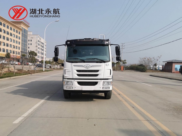 采用解放龙V底盘,4500mm轴距,平顶半浮驾驶室,潍柴WP4.6NQ220E61,一汽CA6TBX085M,435升级冲焊桥(速比5.571),10.00R2018层级,其他:237*75*(7+4),环卫车专用底盘,空调,带国产ABS,前下防护,电动门窗,北斗+GPRS行车记录仪,新法规,连续工作取力器及控制机构,板簧10/10+9,巡航系统,中控锁,200L铝油箱,铝合金储气筒,限速89KM/H。