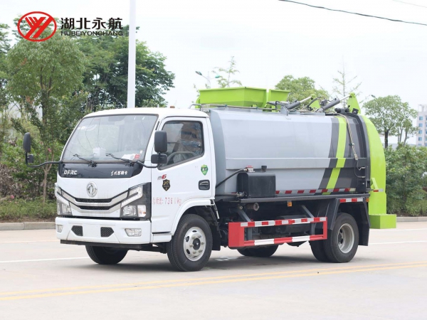 4、箱体尾部导流槽设计,避免卸料时的垃圾飞溅。