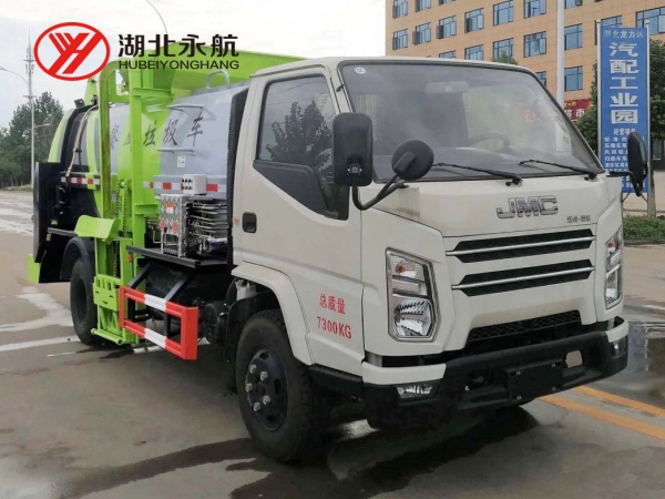 3、进料口标配液压上盖,防止垃圾飞溅。