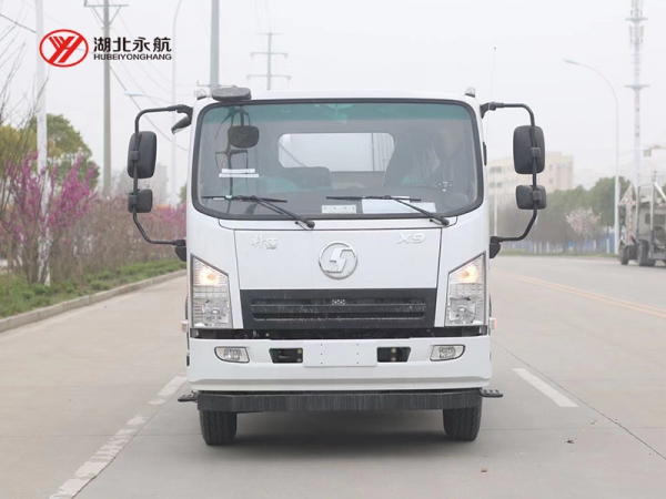 采用陕汽轩德X9底盘,轴距3800mm,云内170马力发动机,万里扬6档变速箱,机械式座椅、电动门窗、中控锁、天行健智雅版BD车载终端、离合助力、车架800x (132-192)/6+4双层、前桥1068/2.5T、后桥1068/5T、130L铁油箱、轮胎8.25R16/16PR。
