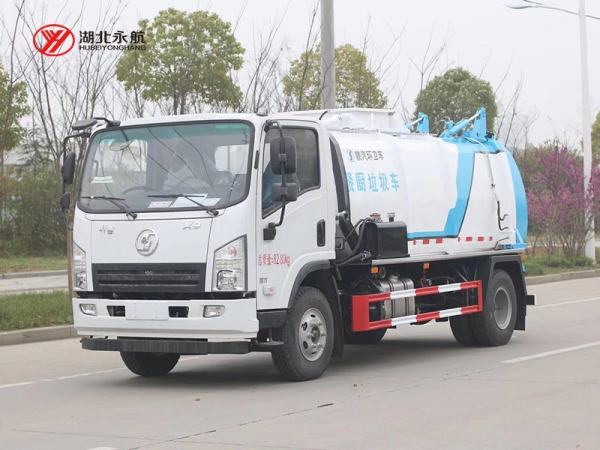 3、进料口标配液压上盖,防止垃圾飞溅。