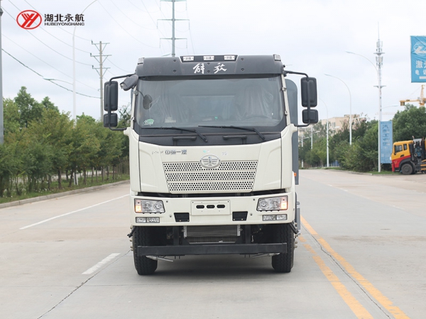 采用解放后双桥底盘,轴距4350+1350mm,11.00R20钢丝胎,全新内饰、电动玻璃升降、手动后视镜、驾驶员座椅为机械减震座椅、单DIN北斗兼容车载系统、标配巡航开关。