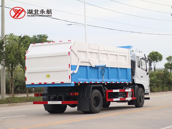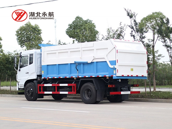 方形箱体,顶部有翼展开盖式和全封闭式两种。其中箱体顶部开盖式对接垃圾车主要用于散装垃圾的收运,也有部分用于与大型垂直式垃圾压缩机配套使用,而全封闭式对接垃圾车主要用于与中小型垃圾压缩机配套使用。