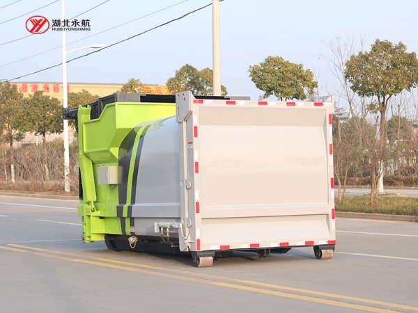 3、压缩箱体整体密封,底板平滑,箱体尾门采用高强度的框架结构设计,减小了因尾门变形导致的密封失效。