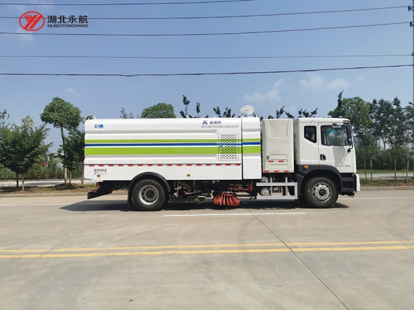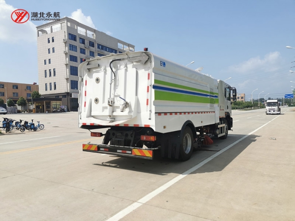 3、具备倒车保护装置,在作业过程中如遇紧急倒车,智能化的控制系统会自动停止作业并收回扫盘、吸盘和侧喷杆;具有防止举升垃圾箱翻车保护;具有检修安全保护。