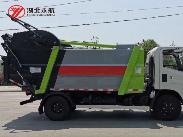 1)、油缸驱动压桶板压桶技术,倾翻上料安全可靠,消除高位上料可能出现的掉桶风险。2)、高品质液压阀消除液压换向冲击,降低作业噪声。3)、先进的电控系统,符合人机工程学的操控系统,大大提高了该产品的人性化程度和市场适应性。4)、与垃圾直接接触的钢材均选用高强度耐磨材料,屈服强度高,耐腐蚀能力强。5)、大离去角,通过性好,避障能力强,满足老城区狭窄街道和填埋场等严苛作业环境。6)、推铲、压填机构及后门采用逻辑互锁控制,安全可靠。
