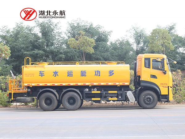 容积18-20方,安装专用洒水泵,可自动抽水和自动排水,洒水宽度≥10m,洒水炮射程≥18m,垂直吸程≥6m。