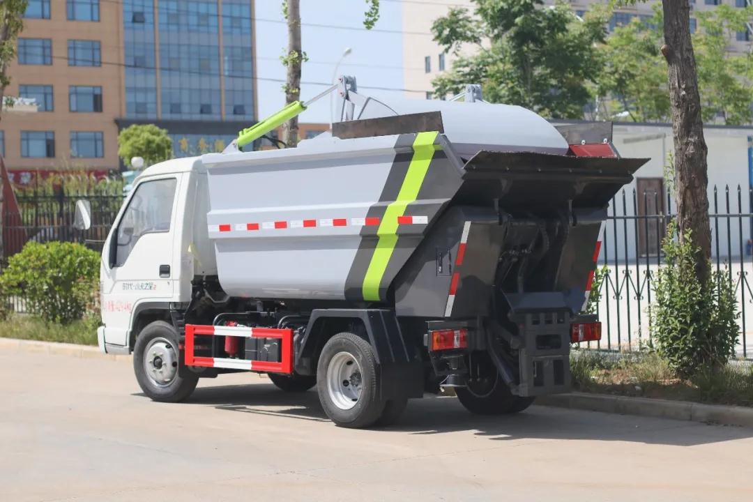 2、采用后翻桶机构,在狭窄街道和小区作业更加方便。新款翻桶架大大提高了翻桶机构的适应性和可靠性。