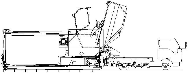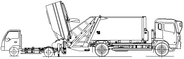 ③ 与大中型整体站对接,伸出支腿,倾翻垃圾箱,打开刮板,倾倒垃圾。