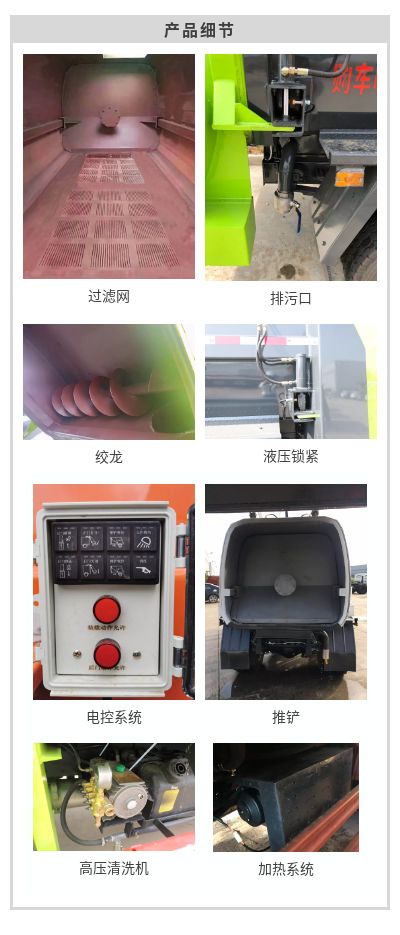 我公司生产的餐厨垃圾车具有整体外形美观、较高的性价比、安全可靠、驾驶便捷的特点。该系列专用车是我公司成熟产品,上装由箱体、后门总成、后门开启机构、密封锁紧机构、推板机构、挂桶提升机构及操纵机构等组成。