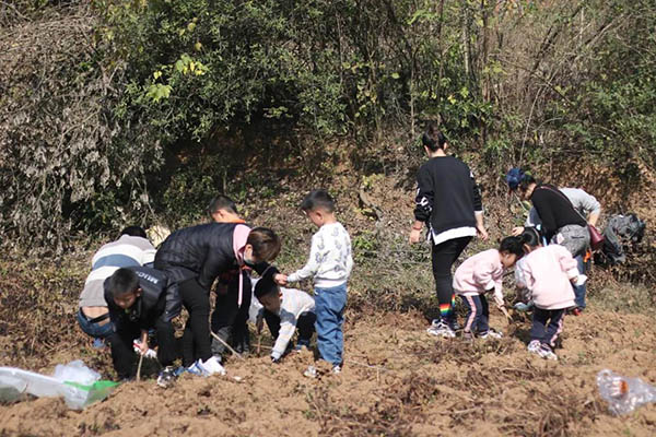 小朋友们也融入田间,体验了一把挖红薯的乐趣。