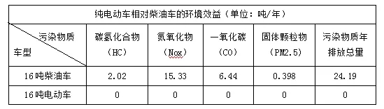 以一台16吨的纯电动车为例,据测算,相较于柴油车产生的碳氢化合物、氮氧化物、一氧化碳与固体颗粒物等污染物,它每年可减排24.19吨大气污染物。