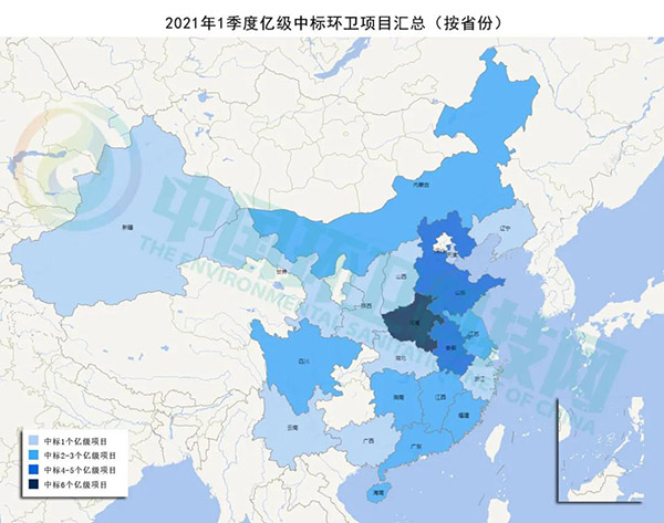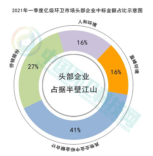 近日,山东省住房和城乡建设厅又发布了《关于做好2021年度全省城乡环境卫生工作的通知》,将生活垃圾分类、建筑垃圾处置及资源化利用、城市道路深度保洁等方面纳入工作内容。此举势必会进一步推动地方环卫工作的进一步提升。安徽省一季度虽然只中标4个亿级环卫项目,但是中标金额较大,约占一季度所有中标亿级项目金额合计的27%,值得关注。2019年10月14日,安徽省下发了《关于进一步加强城市精细化管理工作的指导意见 》,明确指出:大力推进城市道路清扫保洁工作市场化、专业化、标准化,到2020年年底,设区的市建成区机械化清扫率达到80%以上,县城达到65%以上……按总中标金额来看,2021年一季度亿级环卫市场上,排名前三的企业分别是:侨银股份、人和环境、盈峰环境。