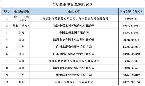 四、5月中标的企业中,进入中标金额 TOP10的省内企业有8个,省外企业有2个。